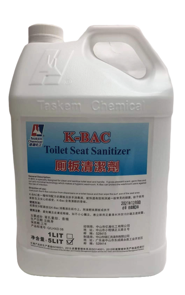 K-BAC 是一種含有清新香味特別配方的廁板及扶手消毒劑, 能快速有效地消滅一般常見的細菌,給予使用者衛生及安心的感受。